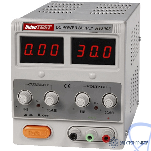 HY3005 – источник питания, позволяющий получать регулируемое, точное и стабильное постоянное напряжение или постоянный ток. Две пары регуляторов грубой и точной настройки облегчают установку напряжения и тока, а цифровые светодиодные индикаторы тока и напряжения упрощают считывание параметров выхода.
