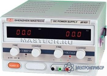 Включение и выключения источника питания HY3020 производится с помощью большого кнопочного выключателя с надежной фиксацией положения.