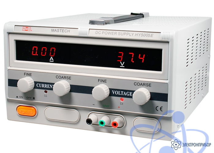 - Плавная установка выходных параметров регуляторами ГРУБО/ТОЧНО;