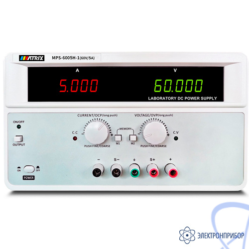- индикация MPS-6005H-1: 4-разрядный LED-дисплей на ток и 5-разрядный на напряжениен;