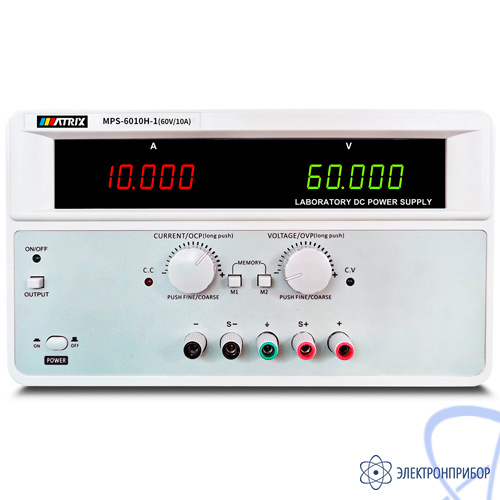 - индикация MPS-6010H-1: 5-разрядные LED-дисплеи на ток и напряжение;