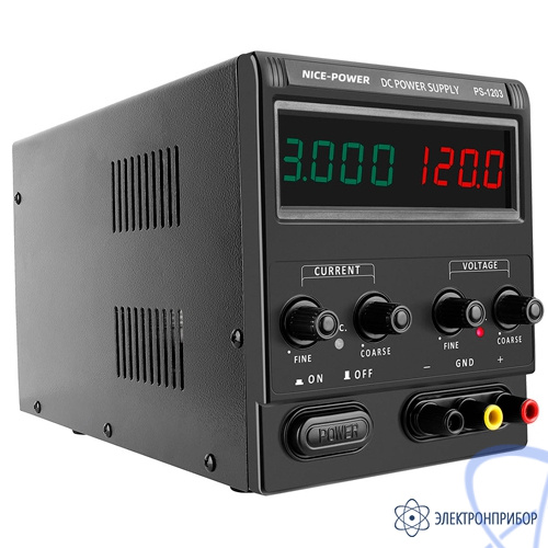 Импульсный источник питания Nice-Power PS-1203, позволяющий получать регулируемое, точное и стабильное постоянное напряжение или постоянный ток. Два регулятора тока и напряжения обеспечивает точность установки, а цифровые четырёхразрядные светодиодные индикаторы тока и напряжения упрощают считывание параметров выхода.