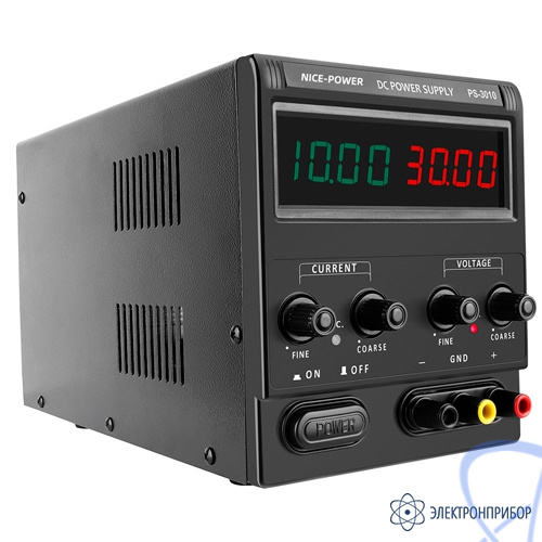 Импульсный источник питания Nice-Power PS-3010, позволяющий получать регулируемое, точное и стабильное постоянное напряжение или постоянный ток. Два регулятора тока и напряжения обеспечивает точность установки, а цифровые четырёхразрядные светодиодные индикаторы тока и напряжения упрощают считывание параметров выхода.