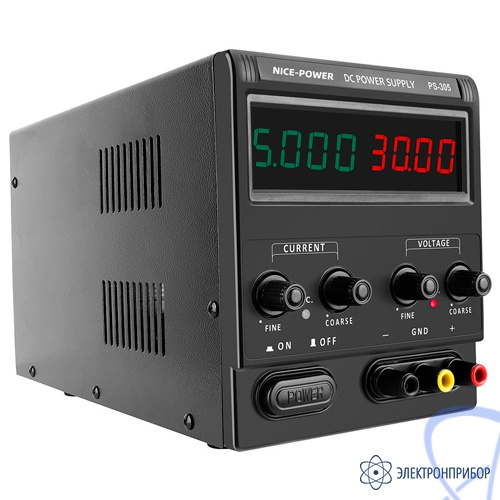 Импульсный источник питания Nice-Power PS-305, позволяющий получать регулируемое, точное и стабильное постоянное напряжение или постоянный ток. Два регулятора тока и напряжения обеспечивает точность установки, а цифровые четырёхразрядные светодиодные индикаторы тока и напряжения упрощают считывание параметров выхода.