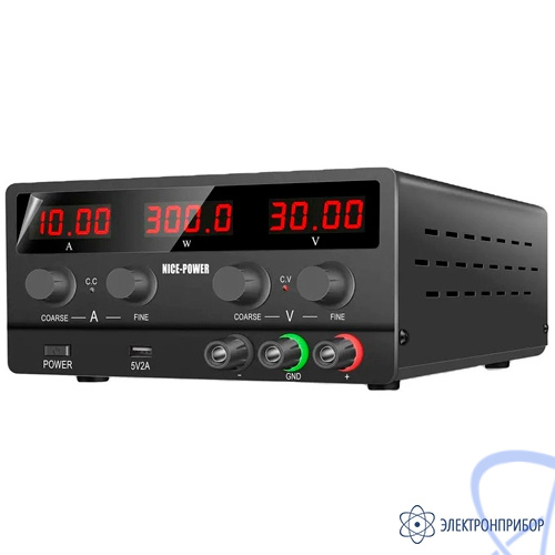Импульсный источник питания Nice-Power SPS-H3010 оснащен интеллектуальным вентилятором с температурным контролем и теплоотводом, хорошо рассеивает тепло и может работать эффективно длительное время. Источник питания имеет выходной порт USB 5 В/2 А, который удобен для быстрой зарядки сотовых телефонов, ноутбуков или других устройств.