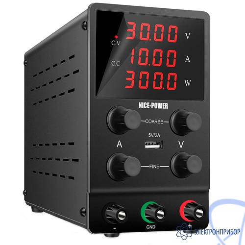 Источник питания импульсный Nice-Power SPS3010 оснащен интеллектуальным вентилятором с температурным контролем и теплоотводом, хорошо рассеивает тепло и может работать эффективно длительное время. Источник питания имеет выходной порт USB 5 В/2 А, который удобен для быстрой зарядки сотовых телефонов, ноутбуков или других устройств.
