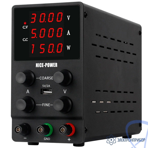 Источник питания импульсный Nice-Power SPS305 оснащен интеллектуальным вентилятором с температурным контролем и теплоотводом, хорошо рассеивает тепло и может работать эффективно длительное время. Источник питания имеет выходной порт USB 5 В/2 А, который удобен для быстрой зарядки сотовых телефонов, ноутбуков или других устройств.