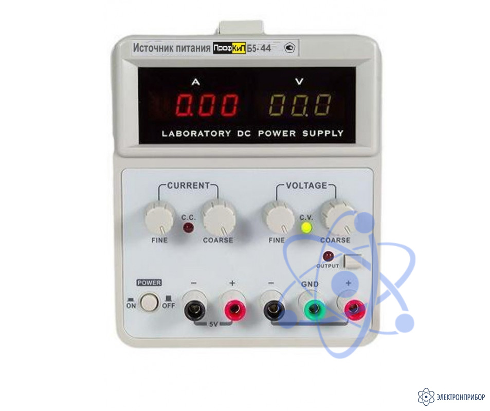 Источник питания ПрофКиП Б5-44 предназначен для питания стабилизированным напряжением и током узлов, и схем радиоэлектронной аппаратуры, при проведении работ в процессах наладки, ремонта и лабораторных исследований. Источник питания отличается от аналогичных моделей малым уровнем шумов и пульсаций выходного напряжения и тока. Прибор включен в государственный реестр средств измерений РФ и допущен к применению в сфере метрологического контроля.