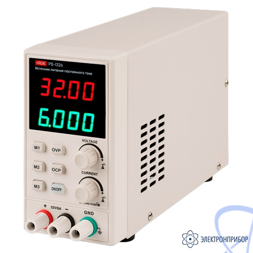 Источник питания RGK PS-1326 - доступное решение для сервисных центров по ремонту электроники, научно-технических лабораторий и радиолюбителей. Прибор используется для диагностики, настройки и контроля качества устройств постоянного тока.