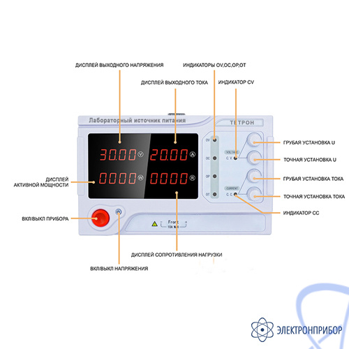 Описание лабораторного источника питания ТЕТРОН-20020Е: