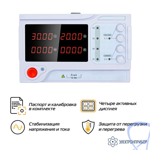 На четырех ярких индикаторах одновременно отображаются: выходное напряжение, ток, мощность и сопротивления нагрузки.