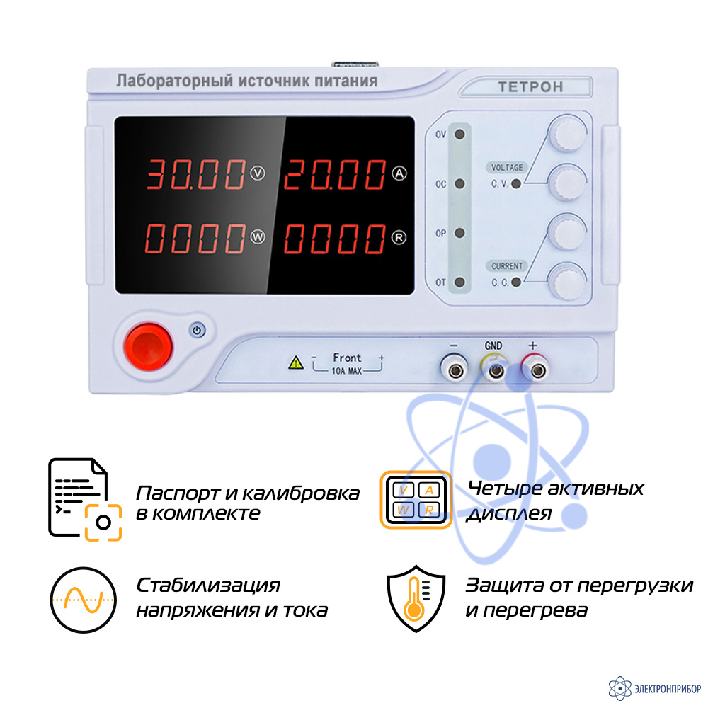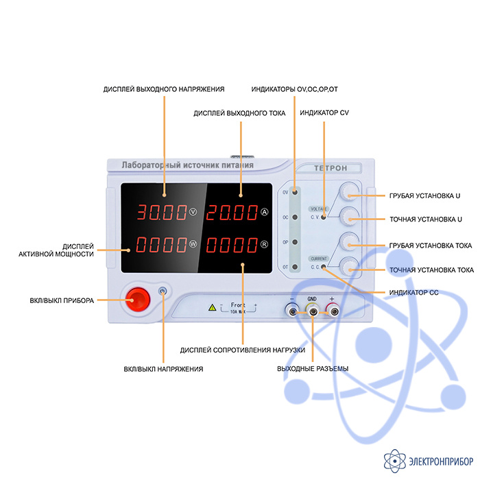Описание лабораторного источника питания ТЕТРОН-3040Е: