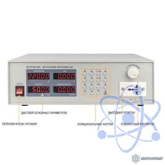 ТЕТРОН-ИП7 является лабораторным однофазным источником питания переменного тока. Выходное напряжение регулируется в диапазоне от 1 до 300 вольт.