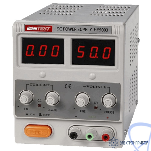 UnionTest HY5003 – источник питания, позволяющий получать регулируемое, точное и стабильное постоянное напряжение или постоянный ток. Две пары регуляторов грубой и точной настройки облегчают установку напряжения и тока, а цифровые светодиодные индикаторы тока и напряжения упрощают считывание параметров выхода.