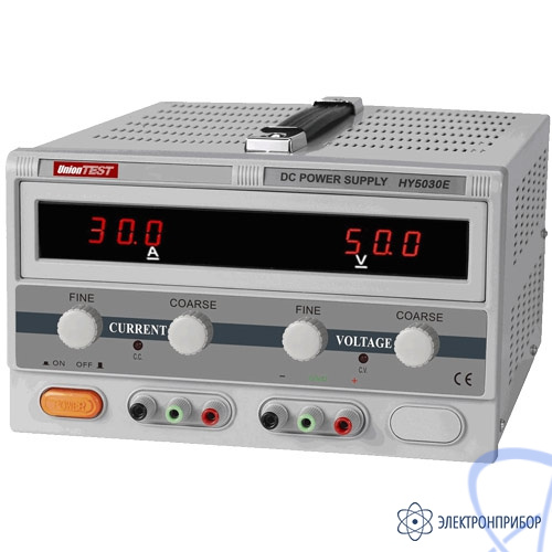 Прибор UnionTEST HY5030E представляет собой импульсный высокостабильный лабораторный регулируемый источник питания постоянного тока, допускающий плавную установку уровней и выходного напряжения и выгодного тока. Индикатором тока и напряжения служит 3-х разрядный светодиодный дисплей.