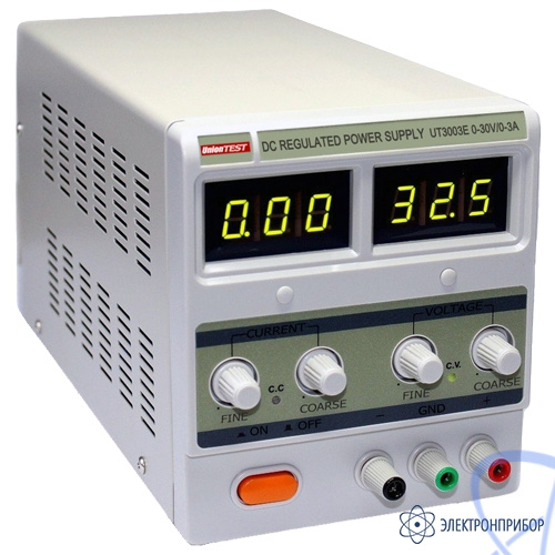 Линейный источник питания UT3003E - источник питания, позволяющий получать регулируемое, точное и стабильное постоянное напряжение или постоянный ток. Две пары регуляторов грубой и точной настройки облегчают установку напряжения и тока, а цифровые индикаторы тока и напряжения упрощают считывание параметров выхода. Источник питания предназначен для использования в сфере образования, производства, науки и обслуживания. Мощный трансформатор для долговременной работы в предельных режимах.