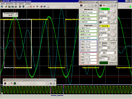 Каждый режим работы осциллографа выполнен в виде отдельного окна, которые пользователь может располагать в удобном для себя участке экрана монитора.