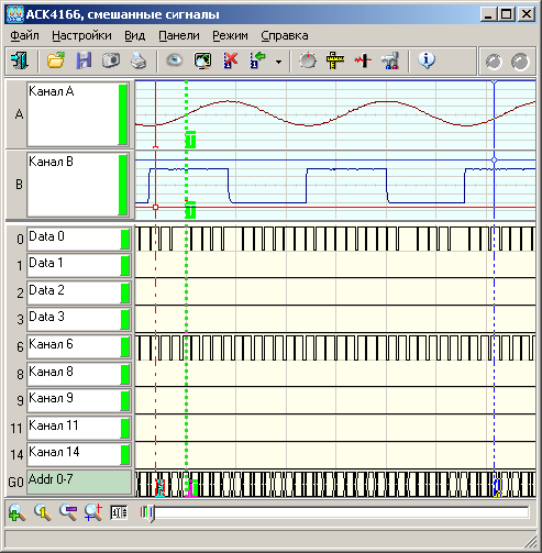 Интерфейс осциллографа USB смешанных сигналов АСК-4166: