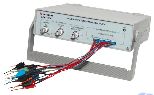 Осциллограф смешанных сигналов АСК-4166 предназначен для наблюдения и анализа синхронных временных диаграмм цифровых и аналоговых сигналов, их отображения на мониторе компьютера, измерения параметров и математической обработки с помощью программного обеспечения.