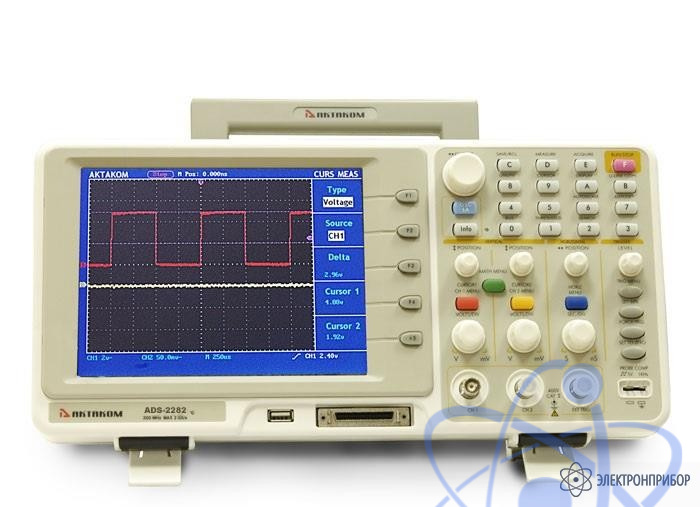 - 20 автоматических измерений: частота, период, среднее значение напряжения, размах, среднеквадратическое значение напряжения за один период, максимальное и минимальное значение напряжения, напряжение вершины и основания прямоугольного импульса, амплитуды напряжения, выброса на вершине и основания прямоугольного импульса, длительность нарастающего и спадающего фронта, длительность положительного и отрицательного импульса, скважность положительного и отрицательного импульса, задержка нарастающего и спадающего фронта;
