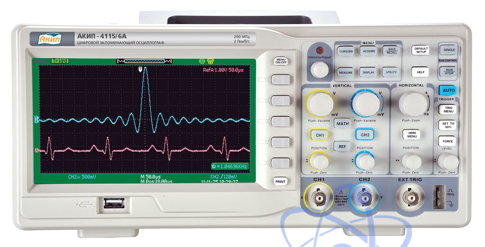 Стандартная выборка, усреднение (4 /…/ 256), пиковый детектор 10 нс, накопление (1 с, 2 с, 5 с, бесконечн., выкл.), самописец (от 100 мс/дел) |