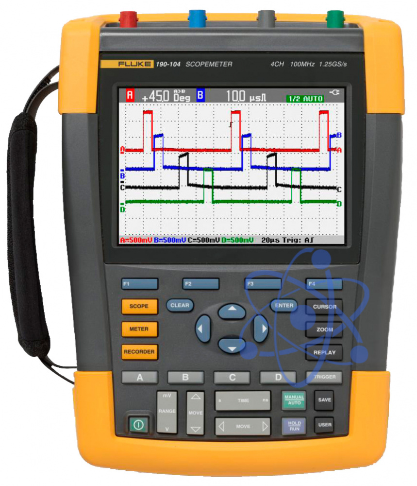 Назначение 4-х канального переносного осциллографа Fluke-190-104: