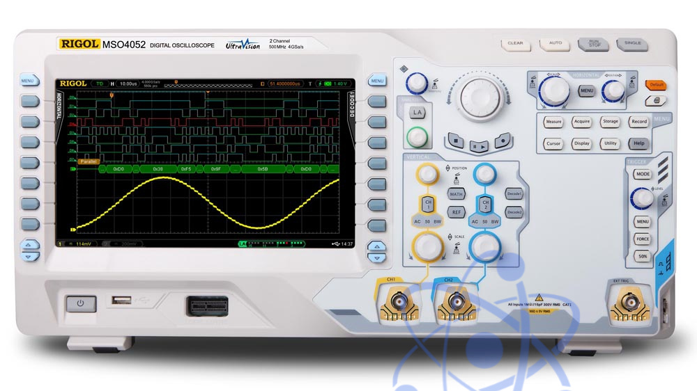 2 аналоговых канала + 16 цифровых каналов + внешний запуск |