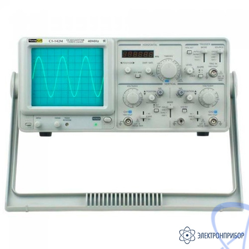 Осциллограф сервисный ПрофКиП С1-142М предназначен для исследования электрических сигналов в полосе пропускания от 0 МГЦ до 40 МГц путем визуального наблюдения на экране электронно-лучевой трубки (ЭЛТ), измерения их амплитудных и временных параметров по шкале экрана. Может использоваться для ремонта, обслуживания и диагностики неисправностей радиоэлектронной аппаратуры, в том числе и на труднодоступных объектах. Осциллограф сервисный ПрофКиП С1-142М характеризуется удобством в работе и при обслуживании, прочностью конструкции, высокой временной и температурной стабильностью, небольшим весом и габаритными размерами, а также имеет встроенный 6-разрядный частотомер.