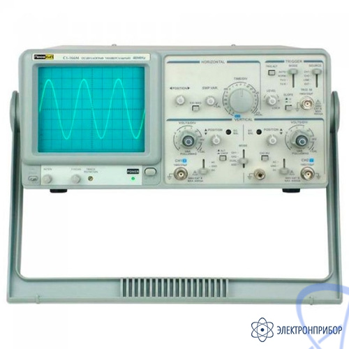 Осциллограф универсальный ПрофКиП С1-166М предназначен для исследования формы и измерения амплитудно-временных параметров одного или двух периодических сигналов в полосе пропускания от 0 МГц до 40 МГц путем их визуального наблюдения, а также детального исследования выбранной части растра по одному каналу при оперативном и периодическом контроле качественных и количественных показателей телевизионного тракта и его отдельных звеньев во время проведении наладочных, ремонтных работ и при лабораторных исследованиях в условиях умеренного климата. Осциллограф универсальный ПрофКиП С1-166М предназначен для работы в лабораторных и цеховых условиях и может использоваться для исследовательских, поверочных и ремонтных работ.