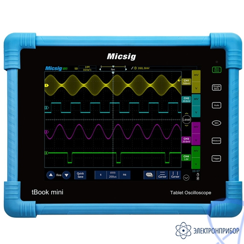 Новая техника управления планшетным осциллографом Micsig в сравнении с традиционным прибором сделает Вашу работу по тестированию и измерению более простой и более легкой. tBook mini серия TO1000 – это цифровые осциллографы начального уровня, которые удовлетворят Ваши запросы превосходным исполнением при сверхнизкой цене. Портативный и гладкий дизайн прибора позволит увеличить свободное пространство на Вашем рабочем месте. Емкостной сенсорный дисплей с высоким разрешением и интуитивно понятное меню указывают, что серия TO1000 создана с использованием действительно современного опыта.