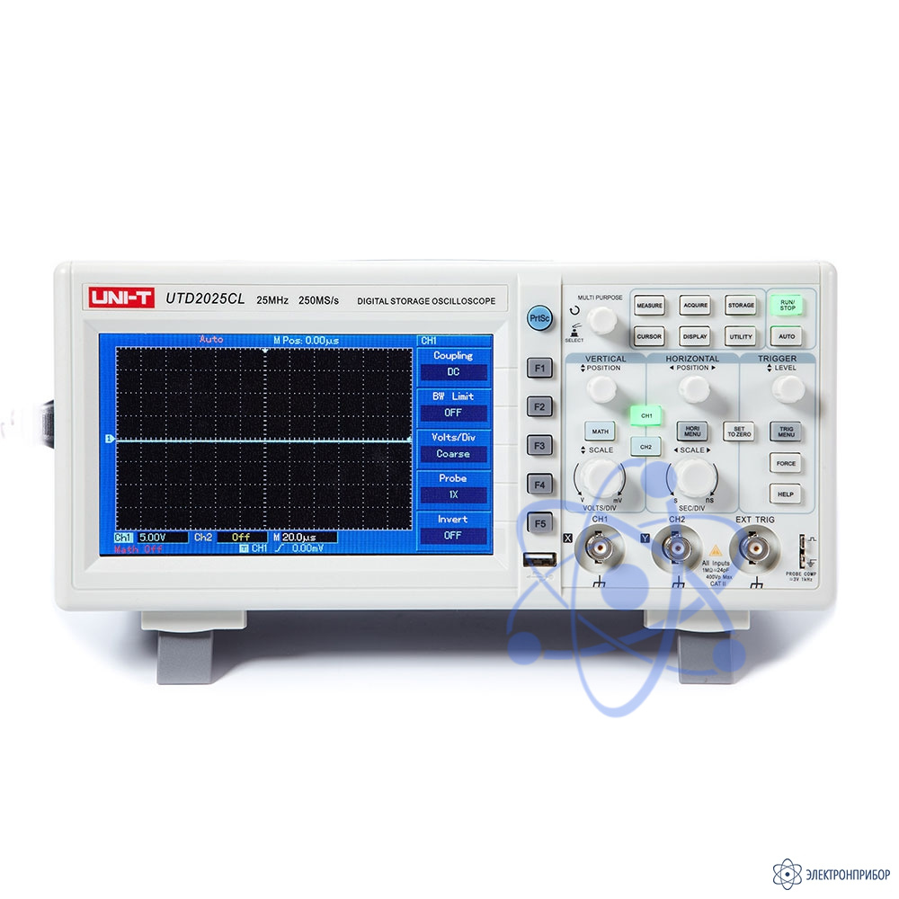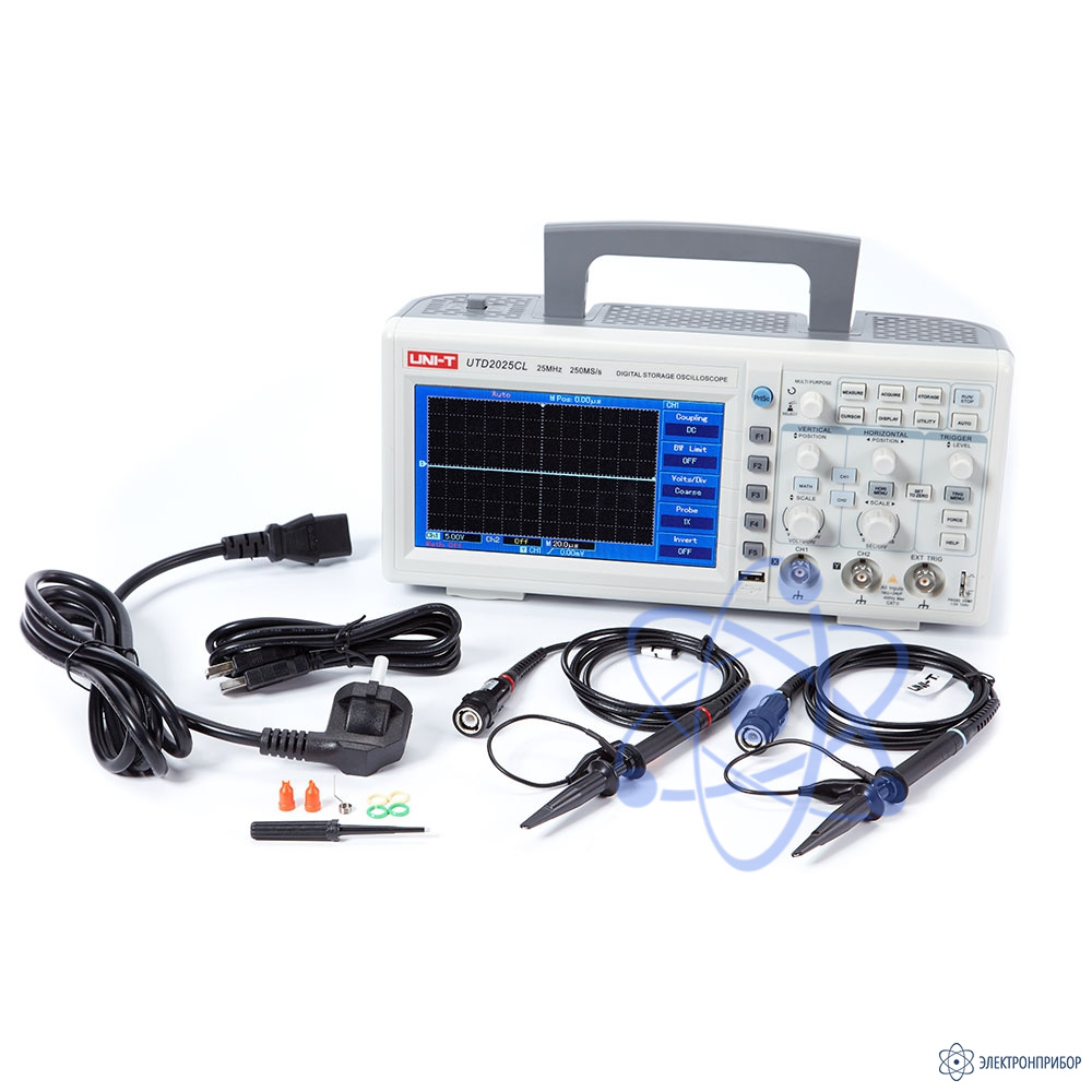 UNI-T UTD2025CL - двухканальный цифровой осциллограф производства компании UNI-T. Осциллограф обладает полосой 25 МГц, большой скоростью выборки 1.0 ГВ/с, и памятью 64 M точек.