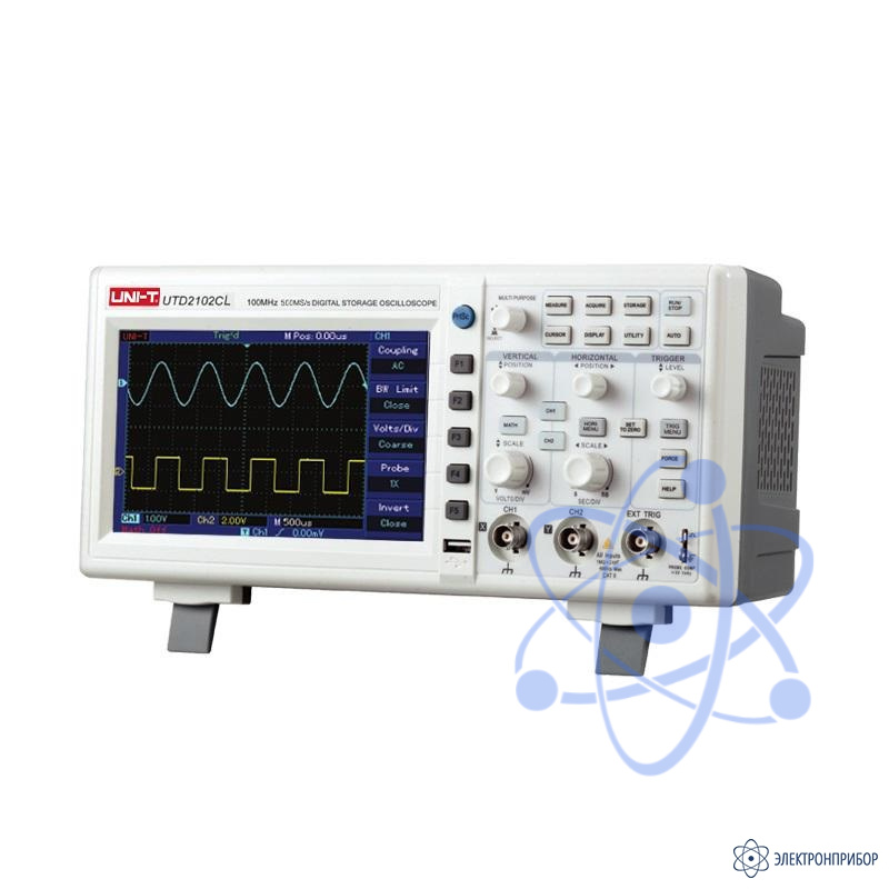Цифровой 2-х канальный осциллограф UTD20102CL+ в настольном исполнении, осуществляет скоростное, до 500 млн выборок в секунду преобразование аналоговых сигналов в цифровые с последующим выводом информации на дисплей в виде графиков.