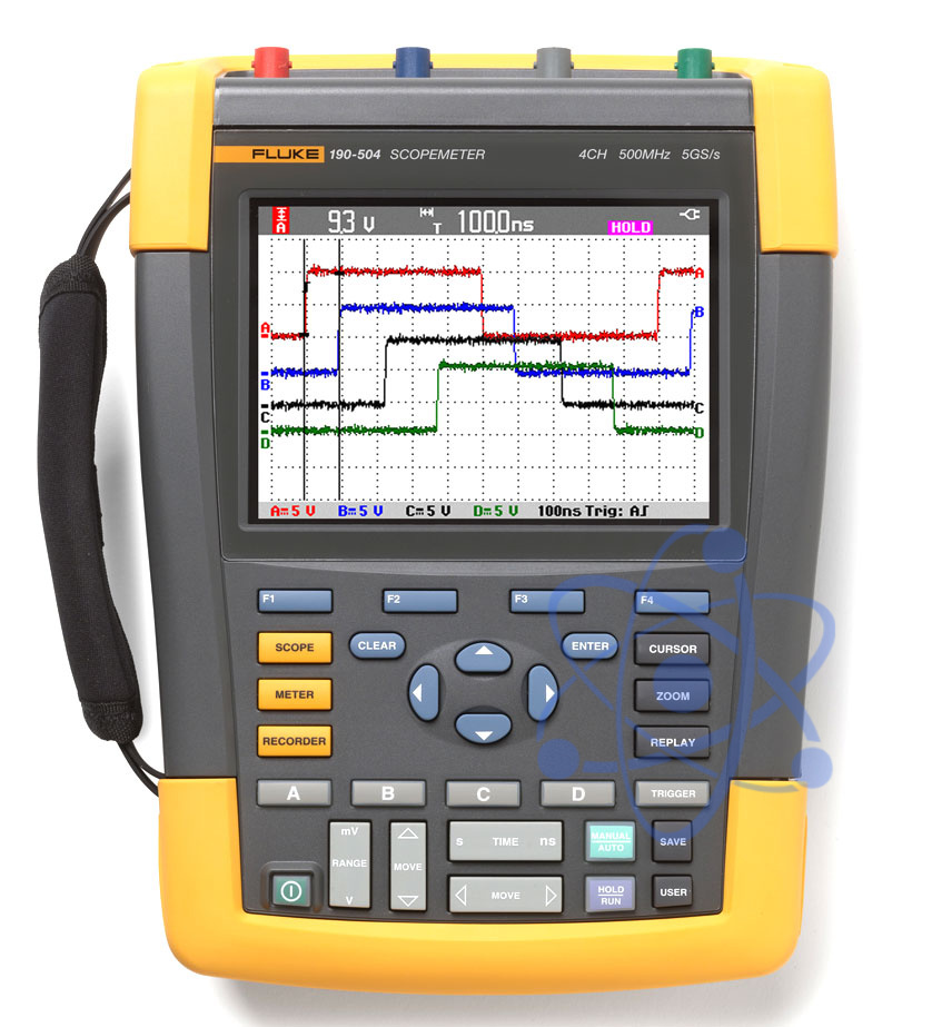 Назначение четырехканального цветного портативного осциллографа-мультиметра Fluke 190-504: