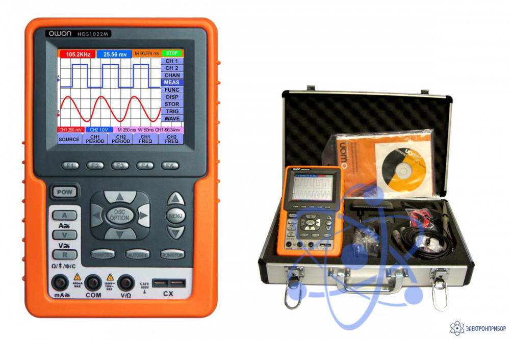 Осциллограф-мультиметр HDS-1022M представляет собой портативный 2-х канальный цифровой запоминающий осциллограф реального времени с полосой пропускания 20 МГц. Осциллограф выполнен на базе 8 битного АЦП с частотой дискретизации 100 МГц и объемом памяти 6 кБ на канал.