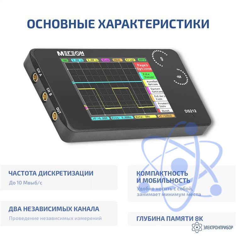 Представляем карманный цифровой осциллограф МЕГЕОН DS212 - компактное и удобное устройство, идеально подходящее как для профессионалов, так и для начинающий специалистов. Этот осциллограф сочетает в себе передовые технологии и простоту использования, что делает его отличным инструментом для анализа в различных областях.