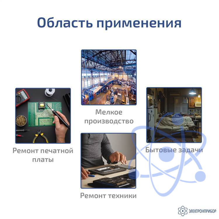 - идеален для образовательных учреждений, исследований и ремонтов электроники;