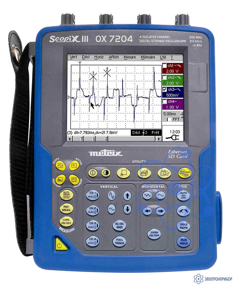В режиме ОСЦИЛЛОГРАФ приборы обеспечивают визуальное наблюдение, запоминание в цифровой форме и автоматическое или курсорное измерение амплитудных и временных параметров электрических сигналов. Каждый канал осциллографов осуществляет независимую цифровую обработку и запоминание сигналов.