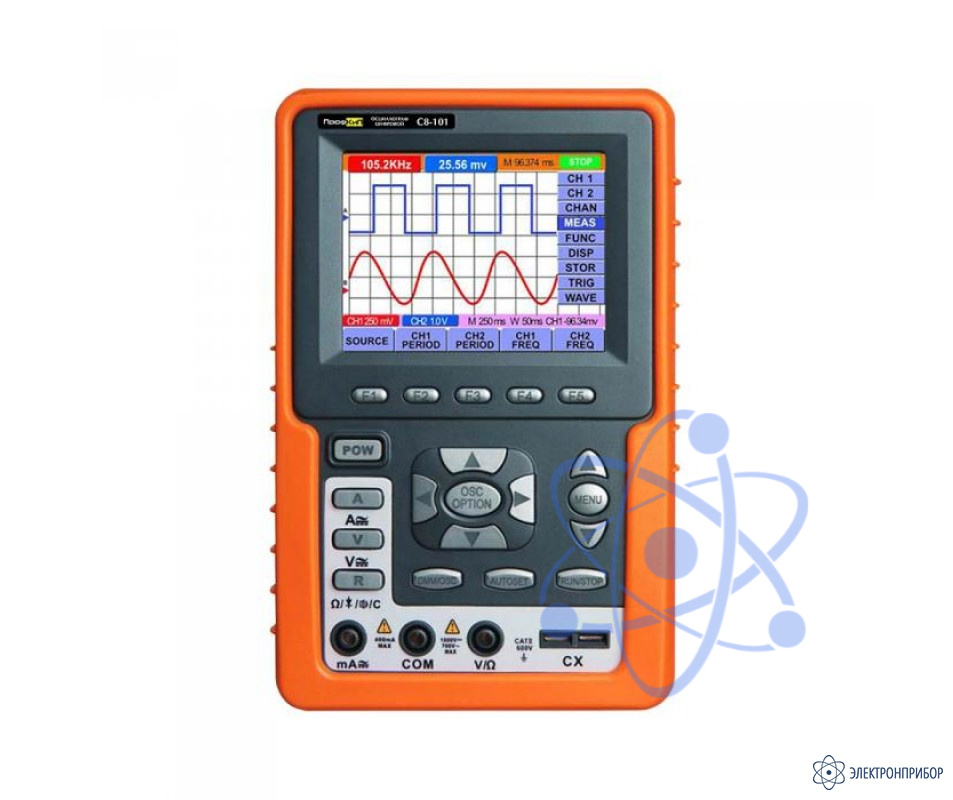 размах (Uпик-пик), максимальное значение (Uмакс), минимальное значение (Uмин), уровень вершины (Top), уровень основания (Base), амплитуда (Amp), СКЗ (RMS), усреднение (Uavg), выброс (Overshot), выброс до измерения напряжения (Preshoot), частота (Frequency), период (Period), длительность фронта (Rise Time), длительность среза (Fall Time), задержка (Delay), длительность положительного импульса (+Width), длительность отрицательного импульса (-Width), коэффициент заполнения для положительных импульсов (+Duty), коэффициент заполнения для отрицательных импульсов (-Duty) |