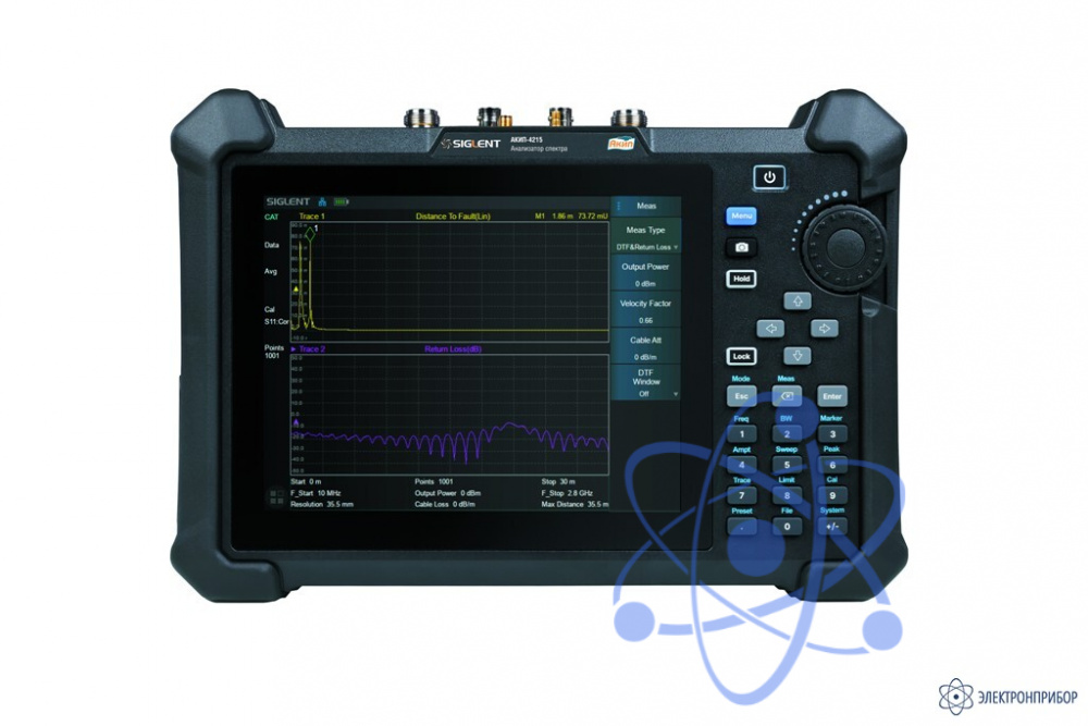 Измерение дистанции до повреждения, КСВН, затухание в кабель (Порт-1), вносимые потери (Порт-2), TDR (рефлектометр)