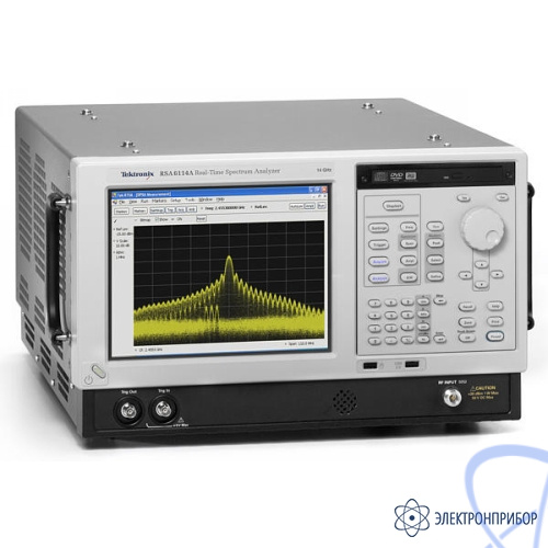 Анализатор спектра реального времени RSA6114A: Частотный диапазон: 9 кГц … 14 ГГц; Полоса обзора реального времени: до 40 МГц (до 110 МГц опционально) — непрерывная спектрограмма длиной до 1,7 сек в полосе 110 МГц; Отображаемый средний уровень собственного шума (DANL): 150 dBm/Hz @ на 3 ГГц (без предусилителя), 164 dBm/Hz (с предусилителем); Частотное разрешение (RBW) 1 Гц ... 20 МГц (устанавливается вручную или автоматически), погрешность измерения амплитуды 0,5 дБ; Импорт I-Q данных; Экспорт I-Q данных; Встроенный ПК.