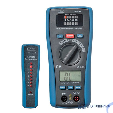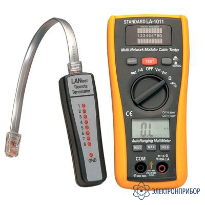 Кабель-тестера LA-1011 предназначен для проверки кабельных линий в телефонных и компьютерных сетях. Обеспечивает одновременный контроль до 8 кабельных жил с индикацией номера тестируемого кабеля и характера неисправности. С помощью прибора можно определять обрыв, короткое замыкание и перехлест жил витых пар.