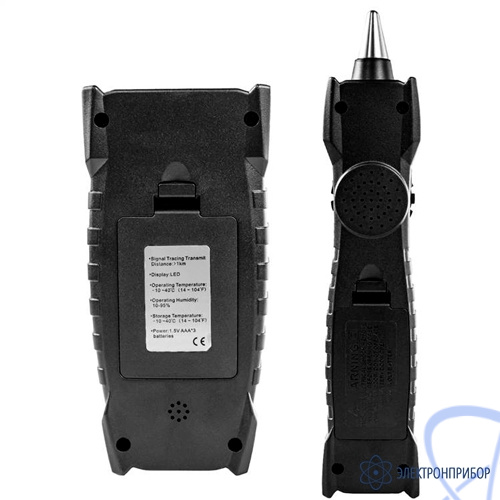 Этот тандем из помехозащищённого передатчика и высокочувствительного приёмника - незаменимый комплект для любого монтажника или сервисного инженера. Для использования в условиях недостаточной освещённости приёмник оснащен светодиодным фонариком, а порты RJ11 и RJ45 и адаптера типа "крокодил" позволяют подключаться к коммуникационным сетям и отдельным проводникам. Питание осуществляется от батарейки 9 В 6F22 "крона" и трех батарей 1,5 Вт LR03 «ААА».