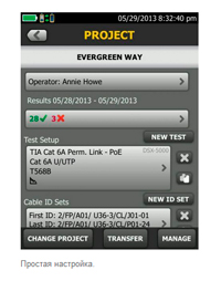 Управление тестированием в рамках нескольких задач, выполняемых разными рабочими группами и с применением различных тестеров и требований, приводит к случайным ошибкам и существенным временным затратам. Более емкие задачи делают организацию проекта еще более важной, чем когда-либо. Новая система управления ProjX в инструментах DSX-8000 для сертификации медных кабелей предоставляет отдельные файлы проекта для всех связанных с заданиями данных, которые могут быть сохранены под простыми именами, исключая необходимость в повторном вводе этих данных после запуска проекта. Это сводит к минимуму ошибки настройки или потерю файлов, даже при переходах от одной задачи к другой или использовании нескольких тестеров на одном объекте. Система также предоставляет результаты тестирования по идентификаторам кабелей, объединяет изменения, не создавая дубликаты, и всегда начинает работу с последнего установленного модуля для тестирования медных или волоконно-оптических кабельных систем. Система управления ProjX обеспечивает состояние в реальном времени до завершения каждой задачи 0-100%, что дает оператору возможность выделить какой-либо тест, требующий повторного внимания, и помогает обеспечить, что ничего не будет упущено. При выборе команды «Исправить позже» создается перечень недоделок или автоматический список задач по ликвидации проблем, которые возникли при выполнении работ. ProjX позволяет менеджерам проектов и бригадирам работать действительно эффективно.