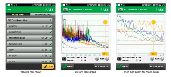 - Пользователи могут управлять 12 000 результатами тестирования кабелей Cat 6A с полной графикой;