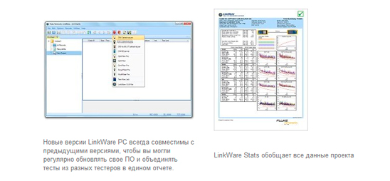 - Программное обеспечение управления LinkWare PC обеспечивает непревзойденный анализ результатов тестирования и профессиональные отчеты тестирования;
