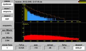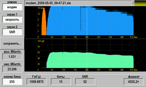 В диапазоне каналов (бинов): ADSL, ADSL2 0 - 255 с измерением в каждом бине; ADSL2+ 0 - 511 с измерением в каждом бине