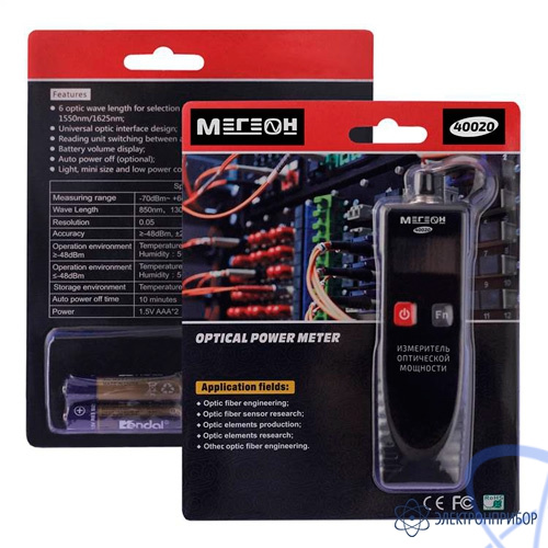 МЕГЕОН 40020 - новинка в модельном ряду измерителей мощности оптического излучения. Это современный, компактный, высокочувствительный, простой в использовании прибор с широким спектром длин волн. Модель имеет эргономичную форму корпуса и удобное расположение органов управления, благодаря чему достигается максимальное удобство при эксплуатации. Прекрасно подходит для применения в сферах телекоммуникации, научных, обучении, промышленности и при разработке оптоволоконных линий связи. Станет незаменимым помощником при проведении работ при монтаже и обслуживании высокоскоростных каналов передачи данных. Цифровой измеритель оптического излучения является профессиональным оборудованием, который может использоваться для измерения интенсивности светового потока в оптоволокне. Изделие по достоинству оценят любители и профессионалы.