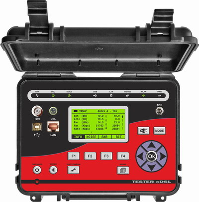 Тестер использует набор микросхем DSL от лидера отрасли Broadcom для работы с VDSL2 и ADSL2+ с технологией Broadcom PhyR™ и продвинутой защитой от импульсных помех (INP)