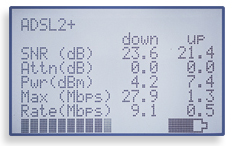 - Графический дисплей, на котором отображаются сразу все параметры ADSL соединения;