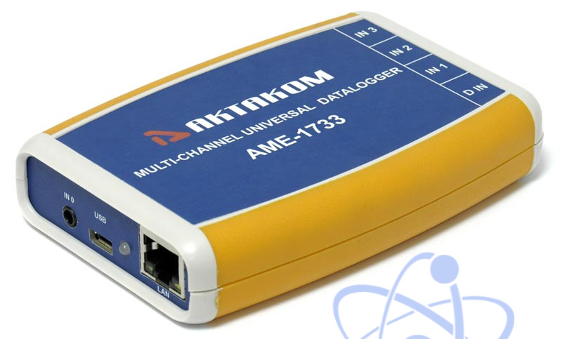 Измерительный модуль Актаком АМЕ-1733 представляет собой базовый блок систем для низкоскоростного непрерывного аналогово-цифрового преобразования по нескольким аналоговым входным каналам, с передачей данных в ПК по интерфейсам USB и LAN. К входным аналоговым входам могут подключаться различные приборные датчики по двух проводной схеме с общей землей. Датчики должны иметь выход по напряжению. Для каждого входа может быть определен любой тип датчика, что позволяет построить на основе данного модуля различные комбинированные мониторинговые системы.
